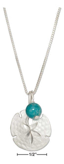Sterling Silver Necklace: 18" Sand Dollar Necklace With Blue Riverstone Bead