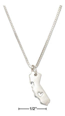 Sterling Silver 18" Silhouette California State Pendant Necklace With Heart Cutout