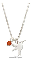 Sterling Silver 18" Silhouette Hummingbird Necklace With Dark Orange Quartz Bead