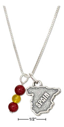 Sterling Silver 18" Spain Map Pendant Necklace With Red And Yellow Beads