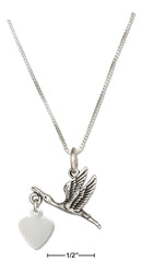 Sterling Silver Necklace: 18" Stork Necklace With Dangling Heart Expecting Mother Pendant