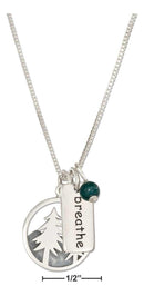 Sterling Silver Necklace: 18" Trees Mountains And Breathe Necklace With Dark Green Bead