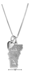 Sterling Silver 18" Vermont State Pendant Necklace With Heart Charm