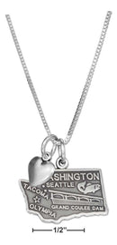 Sterling Silver 18" Washington State Pendant Necklace With Heart Charm