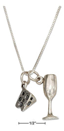 Sterling Silver 18" Wedge Of Cheese And Wine Glass Pendant Necklace