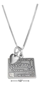 Sterling Silver 18" Wyoming State Pendant Necklace With Heart Charm