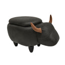 Cow Shaped Wooden Storage Ottoman with Fabric Upholstery, Gray and Brown