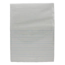 Clean white newsprint printed both sides with 5-1/2" blank space at the top of the sheet and ruled with a dotted midline. With Skip-A-Line ruling. 500 sheets per ream. Recyclable.
