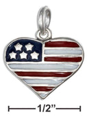 STERLING SILVER ENAMEL HEART SHAPE AMERICAN FLAG CHARM