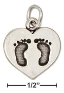 Sterling Silver Heart With Baby Footprints Charm