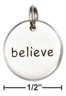Sterling Silver Inspirational "believe" Message Disk Charm