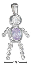 Sterling Silver Charm: June Light Purple Cubic Zirconia Birthstone Boy Pendant