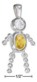 Sterling Silver November Yellow Cubic Zirconia Birthstone Boy Pendant