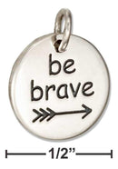Sterling Silver Charm: Round "Be Brave" Message Charm With Arrow