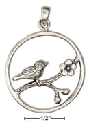Sterling Silver Round Bird Pendant On Flowering Branch