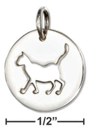 STERLING SILVER ROUND DISK WITH CUT-OUT SILHOUETTE CAT CHARM