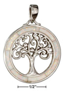 Sterling Silver Charm: Round Synthetic White Opal Frame With Tree Pendant