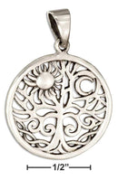 Sterling Silver Charm: Round Tree Of Life Pendant With Sun And Moon