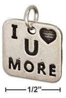 Sterling Silver Charm: Square "I Heart U More" Message Charm