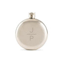One initial on top of another forms a classic engraving on this beautiful quality silver hip flask. It's gorgeous curved shape makes it a special memento with which your groomsmen or bridesmaids can raise a toast to your health on the big day.