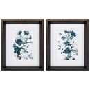 Set of two blue/green abstract images that have been double matted in white and framed under glass with a gunmetal moulding. They come ready to hang and are built to order in the USA!