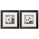 Set of two magnolia prints that are softly double matted and framed under glass with an espresso brown frame. Great space fillers!