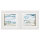 Subtle set of two coastal prints that are double matted and framed under glass in a white wash molding. Comes ready to hang and is hand assembled in the USA!