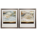 Set of two transitional landscape prints that have been double matted and framed under glass with a deep grey molding. The heavy bottom matting adds extra depth and style to finish the look. Proudly assembled in the USA!