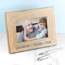 The perfect gift for dad this Father's Day! Made with an oak finished wood Engraved with name(s) of a child(ren) The words 'Dad +' and '= Fun' come as standard text Frame fits 6'' x 4'' photos