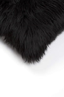 Black Throw Pillows - 18" x 5" Contemporary Black Newzealand Sheepskin - Pillow