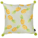 Easily update and refresh your home with Tropical Pineapple Printed Decorative Throw Pillow Cover. Instant upgrade of any space is possible with throw pillow covers made with luxurious brushed fabric. Distinct and colorful patterns will add hue and style to any room. Hidden zipper closure provides a clean and seamless look all the way around. 100% Polyester Brushed with very soft and luxurious hand feel. Our fabrics are dyed with OEKO-TEX? Standard 100 certified products without any harmful substances. 18" X 18" (45cm X 45cm). Hidden zipper closure. High-quality digital printing in the front, back side is solid natural color. Green big pompoms in the corners. Inserts are not included, can be purchased separately. Machine Wash Cold Separately, Gently Cycle Only, No Bleach, Tumble Dry Low, Do Not Iron