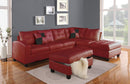 Transform the look and feel of your living room with this contemporary sectional sofa. Definitely this reversible chaise will edify your beloved space to become a welcoming abode for you and your guests. Upholstered in red bonded leather, this charming looking piece is designed to add a touch of luxury and class to any room decor. Featuring buttonless tufted loose back and seat cushions, the sumptuous softness will easily create a sweet sensation as you relax and unwind in the sofa after a long day work. The beautiful piece is accented by two square pillows. The 4-seat sofa has a dimension of 111 inches by 33 inches by 34 inches while the reversible chaise has a dimension of 33 inches by 78 inches by 34 inches.