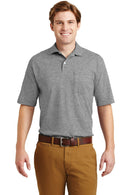 5.6-ounce, 50/50 cotton/poly preshrunk jersey with stain-resistant finish SpotShield fabric repels water and most oil-based spills Tag-free label Welt knit collar that resists curling 2-button placket with bottom box reinforcement Pearlized buttons Double-needle sleeves and hem Oxford is 47/53 Ash (formerly Birch)