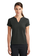 Nike Golf Ladies Dri-FIT Stretch Woven V-Neck Top. 838960. A stretch woven front joins with a knit back for exceptional ease of movement and a sleek, high-performance look. Dri-FIT moisture management Technology helps keep you Dry and comfortable. Tailored for a feminine fit with a flattering v-neckline and raglan sleeves. Design details include open hem sleeves with a contrast heat transfer Swoosh design trademark on the left sleeve. Front Made of 4.7-ounce, 84/16/poly/spandex stretch woven and back Made of 4.2-ounce, 100% polyester knit Dri-FIT fabrics.
