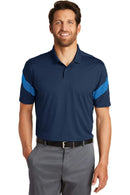 Nike Golf Dri-FIT Commander Polo Take command of the course or the office in this retail-inspired polo that has a modern stripe frame design across the back and wrapped around each sleeve. Dri-FIT moisture management Technology delivers true performance. Details include a flat knit collar, two-snap placket and open hem sleeves. A contrast heat transfer Swoosh design trademark is on the left sleeve. Made of 5.3-ounce, 100% polyester Dri-FIT fabric.