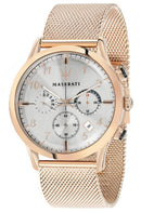 Rose Gold Tone Stainless Steel Case Rose Gold Tone Stainless Steel Mesh Bracelet Quartz Movement Caliber: VR32 Mineral Crystal White Dial Analog Display Chronograph Function Date Display Screw Down Crown Solid Case Back Deployment Clasp 50M Water Resistance Approximate Case Diameter: 42mm Approximate Case Thickness: 12.8mm