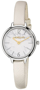 Stainless Steel Case Leather Strap Quartz Movement Caliber: VJ20 Mineral Crystal White Dial Analog Display Solid Case Back Buckle Clasp 50M Water Resistance Approximate Case Diameter: 26mm Approximate Case Thickness: 6.7mm
