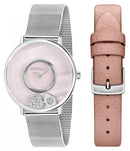 Stainless Steel Case Stainless Steel Mesh Bracelet Quartz Movement Caliber: VJ20 Mineral Crystal Mother of Pearl Dial Analog Display Diamond Accents Solid Case Back Deployment Clasp 50M Water Resistance Approximate Case Diameter: 34mm Approximate Case Thickness: 8.5mm