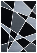 Create an ultra modish look in your living space with this abstract and contemporary rug. This stunning geometric design is enriched by modern colors of onyx black, smoke grey and pure white that will perfectly accent any room decor. This machine-made rug has a hand carved design and is stain and fade resistant for your lifestyle needs.