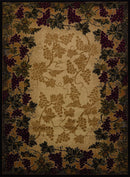 Add a tasteful floor covering to your existing home decor. This is a sophisticated area rug with decorative purple grapes on the vine. This machine made, jute-backing area rug will be an eye-catcher addition to any room.