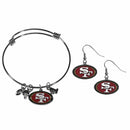 Our trendy San Francisco 49ers charm bangle bracelet is now paired with our most popular dangle earrings for the perfect finish to any fan's outfit. The ajustable wire bracelet with 3 football themed charms and a beautiful team charm that matches the team charm on the earrings. The earrings have hypoallergenic, steel fishhook posts.Officially licensed NFL product Licensee: Siskiyou Buckle. Earrings come with hypoallergenic, steel fishhook posts. Adjustable wire bracelet with a football, helment and number 1 charm. Both popular jewelry pieces come with a fully cast metal team charm with enameled color. Ladies this on trend set San Francisco 49ers will be the pride of any fan's collection