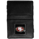 This officially licensed, innovative jacob's ladder wallet design traps cash with just a simple flip of the wallet! There are also outer pockets to store your ID and credit cards. The wallet is made of fine quality leather with a fully cast & enameled San Francisco 49ers emblem on the front. Officially licensed NFL product Licensee: Siskiyou Buckle. Genuine fine grain leather wallet. Wallet secures your cash with just a flip. Comes with ID and card slots. Metal San Francisco 49ers emblem with enameled team colors