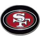 Our officially licensed San Francisco 49ers logo buckle is fully cast metal with an expertly enameled team color finish. The buckle fits belts up to 2 inches and is the perfect fan accessory. Officially licensed NFL product Licensee: Siskiyou Buckle. Fully cast, metal buckle . Bail fits belts up to 2 inches wide. Classic oval shape with enameled details. San Francisco 49ers buckle