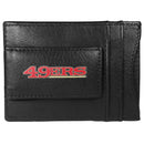 This super slim leather wallet lets you have all the benefits of a money clip while keeping the organization of a wallet. On one side of this front pocket wallet there is a strong, magnetic money clip to keep your cash easily accessible and theÊSan Francisco 49ers team logo on the front. The versatile men's accessory is a perfect addition to your fan apparel. Officially licensed NFL product. Geniune leather men's fashion accessory. Slim style wallet with lots of storage. Magnetic money clip on one side and windowed ID slot on the other. Crisp, digital San Francisco 49ers logo