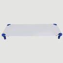 Fitted White Cot Sheet is made of 50% cotton, 50% poly. Measures 22" x 52", and fits Mahar standard cots. Has 1/2" wide elastic loops on all four corners.