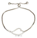 Sterling Silver 6"-9" Adjustable Micro Pave Cubic Zirconia Curved Open Heart Bolo Bracelet