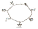 Sterling Silver 7.5" Turtle, Crab, And Dolphin Larimar Charm Bracelet
