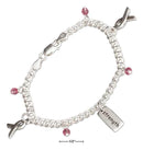 Sterling Silver 7" Breast Cancer Awareness Bracelet With Pink Swarovski Crystals