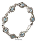 Sterling Silver Bracelet: 7" Continuous Scrolled Link Oval Blue Topaz Bracelet