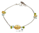 Sterling Silver 7" Peridot, Citrine, Blue Topaz Nuggets On Liquid Silver Bracelet